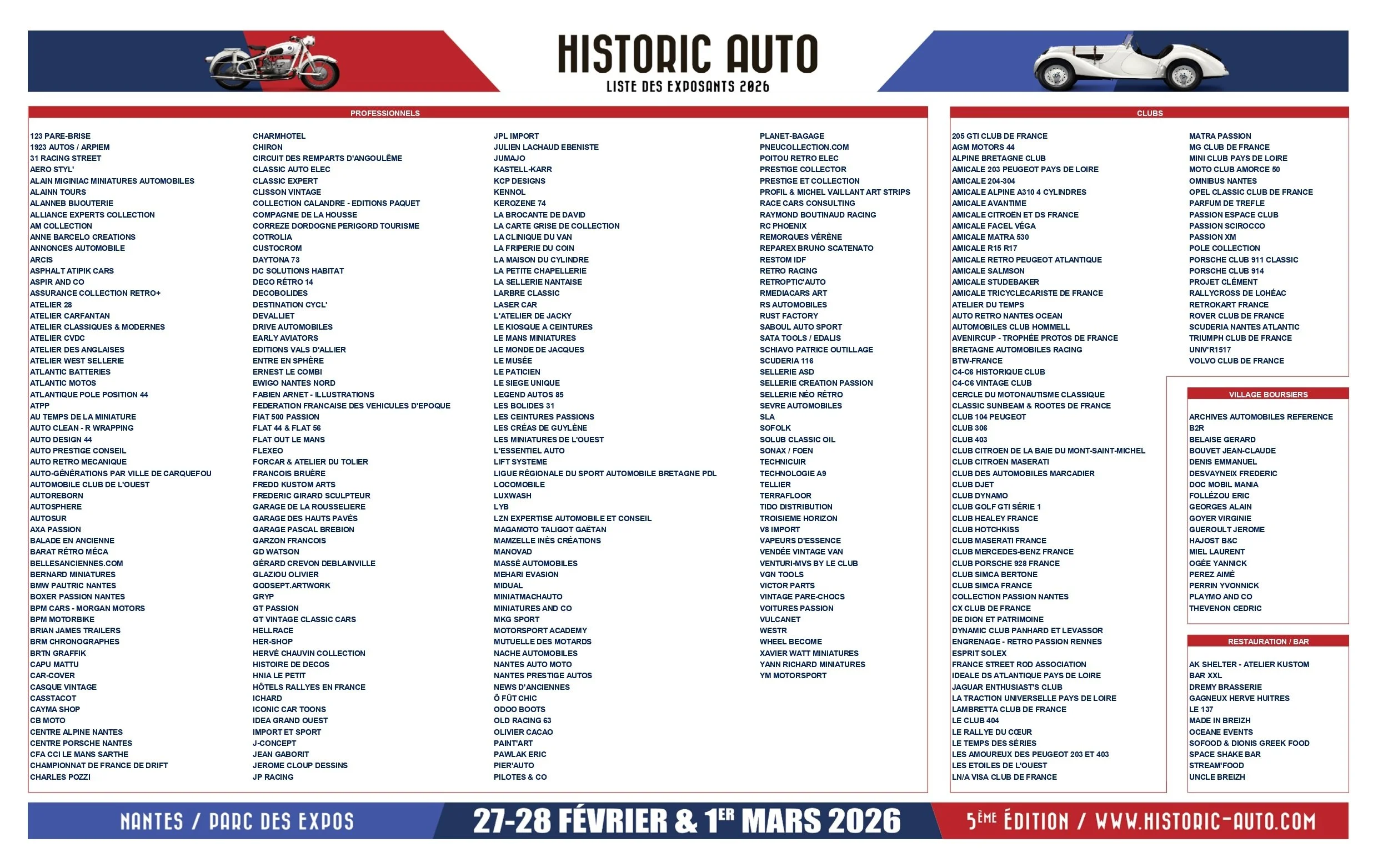Hall 3 (2.500 m²) : Clubs et Pros thème France & Retro-tourisme + Restauration