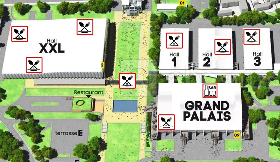 Afin de satisfaire tous les goûts, plusieurs solutions de restauration sont proposées sur le salon. Vous trouverez différents points de restauration dans tous les halls et même sur le parvis extérieur, offrant une variété de plats et de formules, accessibles tout au long de la journée.